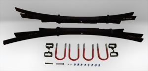 1 Satz Zusatz-Blattfedern zur Verstärkung der Hinterachse inkl. Gutachten zur Auflastung des zulässigen Gesamtgewichts auf 2.805 kg für Benziner und Diesel mit einem Lastindex von 96 und mehr.
